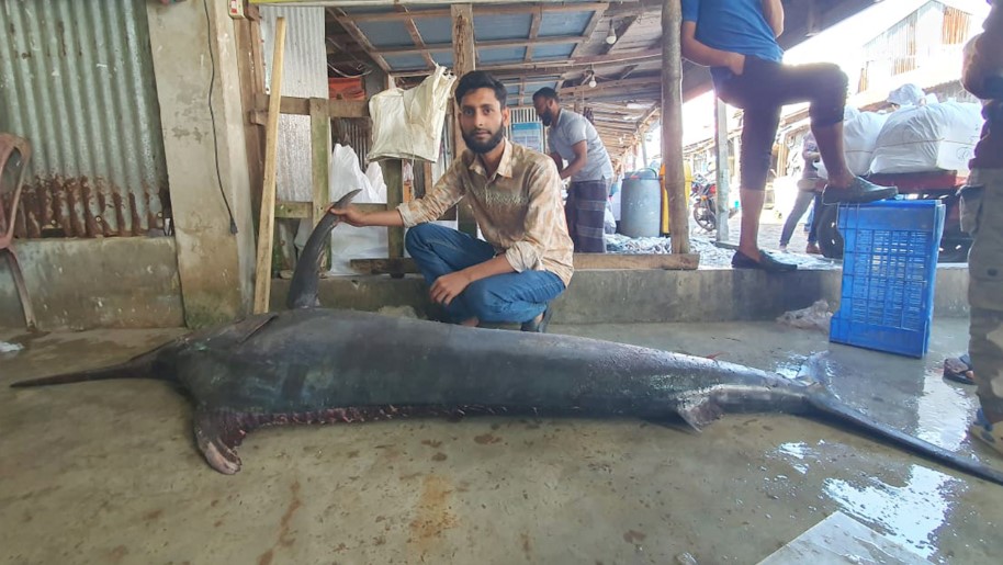 কুয়াকাটায় ধরা পড়ল ৮০ কেজি ওজনের পাখি মাছ