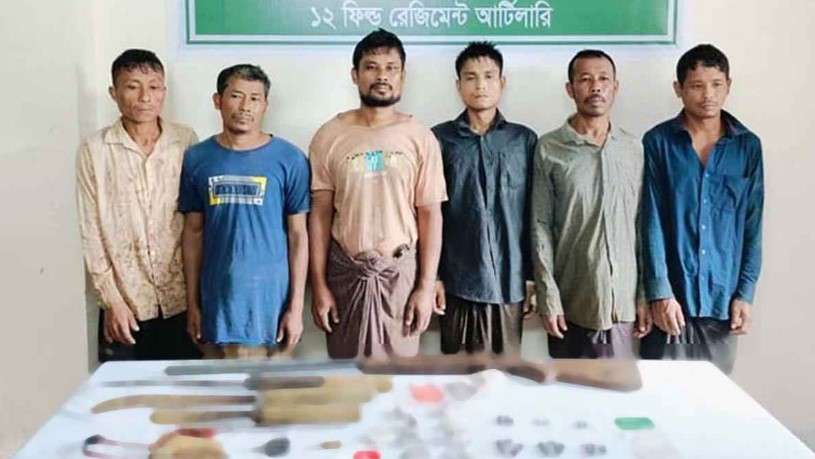 আটক ছয়জন হলেন- মং চালু (৩৬), মনুচিং মারমা (৪০), লুকু-ম, (৩৬) লুসাই মারমা (৩০), চাইসাও (৪০) এবং চাচিংপু মারমা (৩৮)। তাদের বাড়ি বান্দরবান পার্বত্য জেলায়।