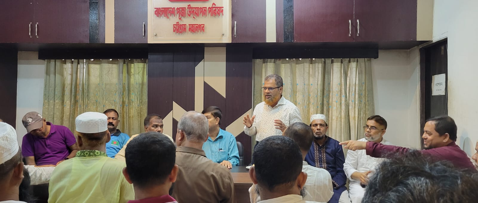 শনিবার বিকেলে জেএমসেন হলস্থ চট্টগ্রাম মহানগরী কেন্দ্রীয় পূজা উৎযাপন পরিষদ কার্যালয়ে মতবিনিময় সভায় প্রধান অতিথির বক্তব্যে তিনি এসব কথা বলেন। চট্টগ্রাম মহানগর পূজা উৎযাপন পরিষদের সভাপতি অধ্যাপক অর্পন কান্তি ব্যানার্জীর সভাপতিত্বে এবং পূজা উৎযাপন পরিষদের সাধারণ সম্পাদক এডভোকেট নিখিল কুমার নাথের সঞ্চালনায় উক্ত মতবিনিময় সভায় অন্যান্যের মধ্যে বক্তব্য রাখেন চট্টগ্রাম মহানগরীর কর্মপরিষদ সদস্য ও কোতোয়ালী থানা আমীর আমির হোসাইন, চট্টগ্রাম মহানগরীর মজলিসে শূরা সদস্য ও কোতোয়ালী থানা সেক্রেটারি মোস্তাক আহমদ, চট্টগ্রাম মহানগর পূজা উৎযাপন পরিষদের সহ-সভাপতি সাংবাদিক প্রদীপ শীল, হিন্দু, বৌদ্ধ, খৃষ্টান কল্যাণ ফ্রন্টের কেন্দ্রীয় সাংগঠনিক সম্পাদক রাজীব ধর তমাল, শ্রী শ্রী জন্মাষ্টমী উৎপাদন পরিষদের কার্যকরি সম্পাদক বিপ্লব পার্থ ও চট্টগ্রাম মহানগর পূজা উৎযাপন পরিষদের সাংগঠনিক সম্পাদক অধ্যাপক অঞ্জন দত্ত।