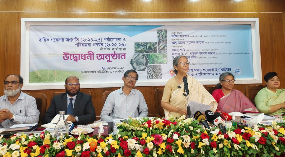 রোববার (২৮ সেপ্টেম্বর) দুপুরে ময়মনসিংহে অবস্থিত বাংলাদেশ মৎস্য গবেষণা ইনস্টিটিউটের বার্ষিক গবেষণা অগ্রগতি পর্যালোচনা ও পরিকল্পনা প্রণয়ন শীর্ষক এক কর্মশালায় প্রধান অতিথির বক্তব্যে তিনি এসব কথা বলেন।
