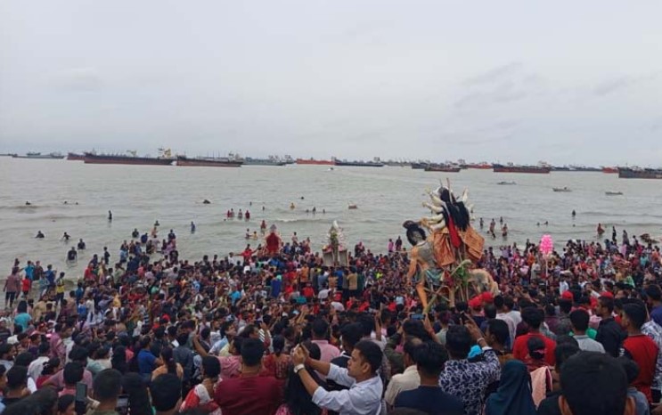 পতেঙ্গা সাগরপাড়ে দুপুরে থেকে উৎসবের আবহ তৈরি হয়। সাধারণ মানুষ, ধর্মপ্রাণ ভক্ত আর পর্যটক মিলেমিশে দেবীকে বিদায় জানান আগামী বছরের আগমনের আশায়।