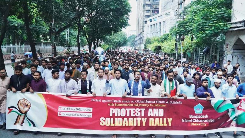 র্যালিটি শাহবাগ মোড়ে গিয়ে সমাবেশের মাধ্যমে শেষ হয়। ‘গ্লোবাল সুমুদ ফ্লোটিলা’-এর ওপর ইসরায়েলি হামলার প্রতিবাদ ও ফিলিস্তিনে মানবিক সহায়তা যাত্রায় সংহতি জানাতে এই র্যালির আয়োজন করে ছাত্রশিবির ঢাকা মহানগর শাখা।