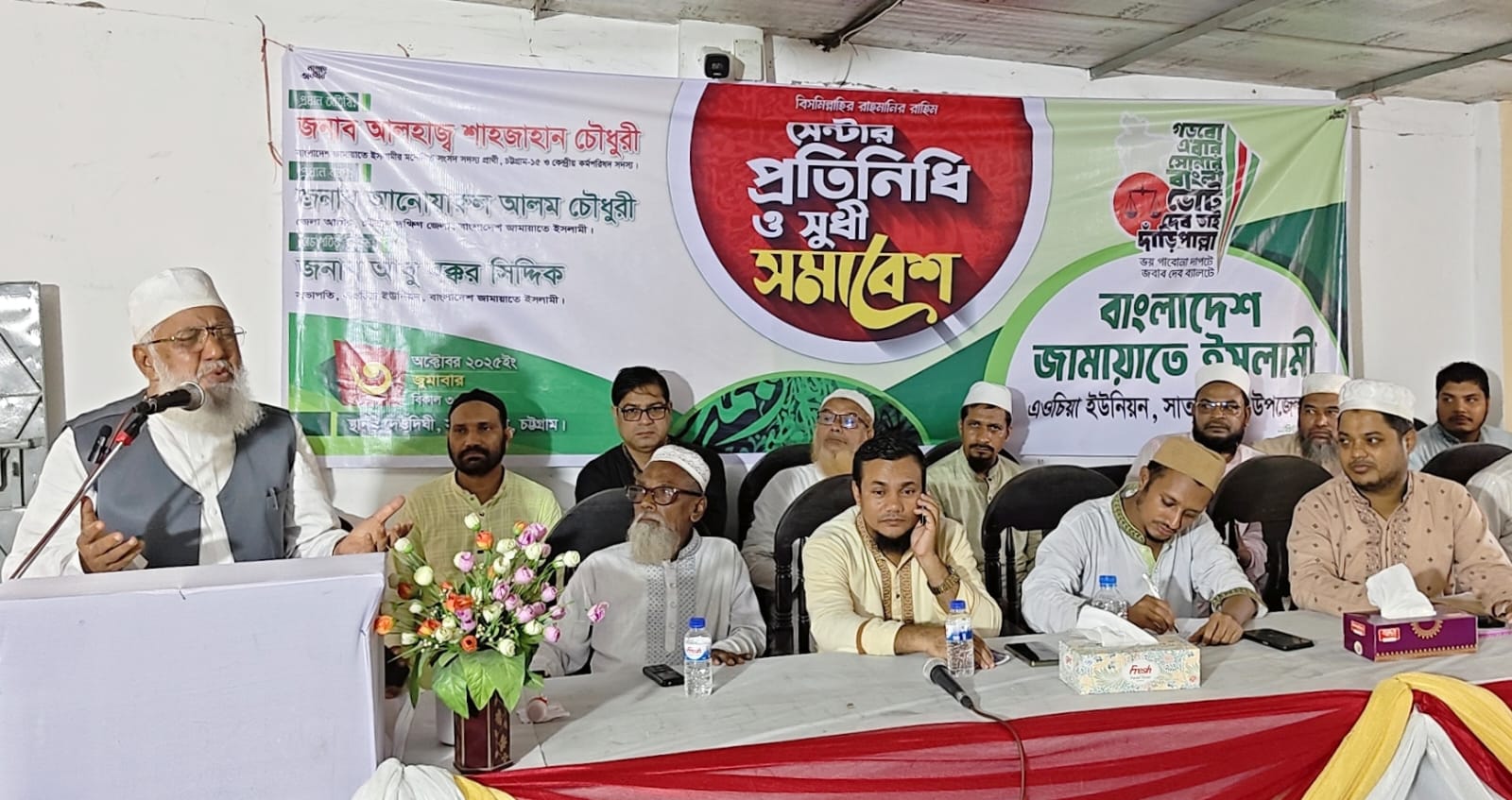 তিনি ৩ অক্টোবর শুক্রবার বিকেলে সাতকানিয়া উপজেলার এওচিয়া ইউনিয়ন জামায়াতের উদ্যোগে সেন্টার প্রতিনিধি সম্মেলনে প্রধান অতিথির বক্তব্যে উপরোক্ত কথা বলেন। ইউনিয়ন সভাপতি আবু বক্কর সিদ্দিকের সভাপতিত্বে অনুষ্ঠিত এই সম্মেলনে প্রধান বক্তা ছিলেন চট্টগ্রাম দক্ষিণ জেলা জামায়াতের আমীর আনোয়ার উল আলম চৌধুরী।