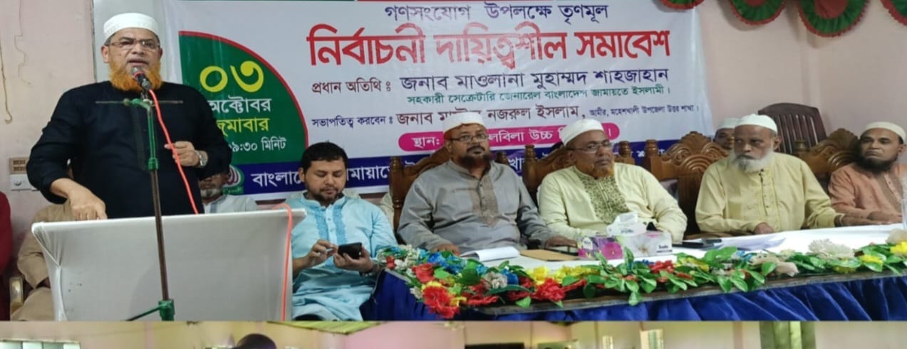 ০৩ অক্টোবর (জুমাবার) সকালে মহেশখালী উপজেলা উত্তর শাখা আয়োজিত তৃণমূল দায়িত্বশীল সমাবেশে প্রধান অতিথির বক্তব্যে তিনি উপরোক্ত কথাগুলো বলেন। উপজেলা আমীর মাস্টার নজরুল ইসলামের সভাপতিত্বে সেক্রেটারি মাওলানা বশীর আহমদের সঞ্চালনায় অনুষ্ঠিত সমাবেশে আরো বক্তব্য রাখেন জেলা জামায়াতের সহকারী সেক্রেটারি ও কক্সবাজার ২ আসন পরিচালক অধ্যাপক আবু তাহের চৌধুরী, জেলা সাংগঠনিক সেক্রেটারি মুহাম্মদ হেদায়াত উল্লাহ, কর্মপরিষদ সদস্য জাকির হোছাইন, কক্সবাজার শহর সাংগঠনিক সেক্রেটারি কামরুল হাসান, মাওলানা উসমান গনি ও হাসান শরীফ রুবেল প্রমুখ।