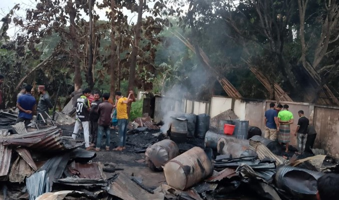 গুইমারার অগ্নিকাণ্ডে ১৯ দোকান ভস্মীভূত