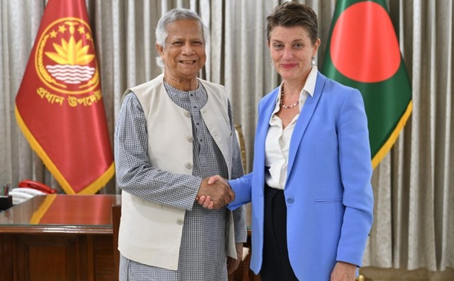 দেশচিন্তা ডেস্ক: অন্তর্বর্তীকালীন সরকারের প্রধান উপদেষ্টা অধ্যাপক মুহাম্মদ ইউনূসের সঙ্গে বাংলাদেশে জাতিসংঘের আবাসিক সমন্বয়কারী গুইন লুইস বিদায়ি সাক্ষাৎ করেছেন।