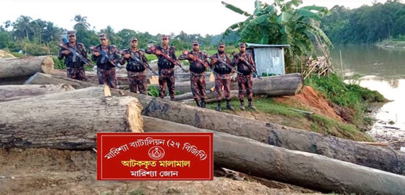 বাঘাইছড়িতে বিজিবির অভিযানে কাচালং নদী থেকে ২০১ ঘনফুট অবৈধ কাঠ জব্দ