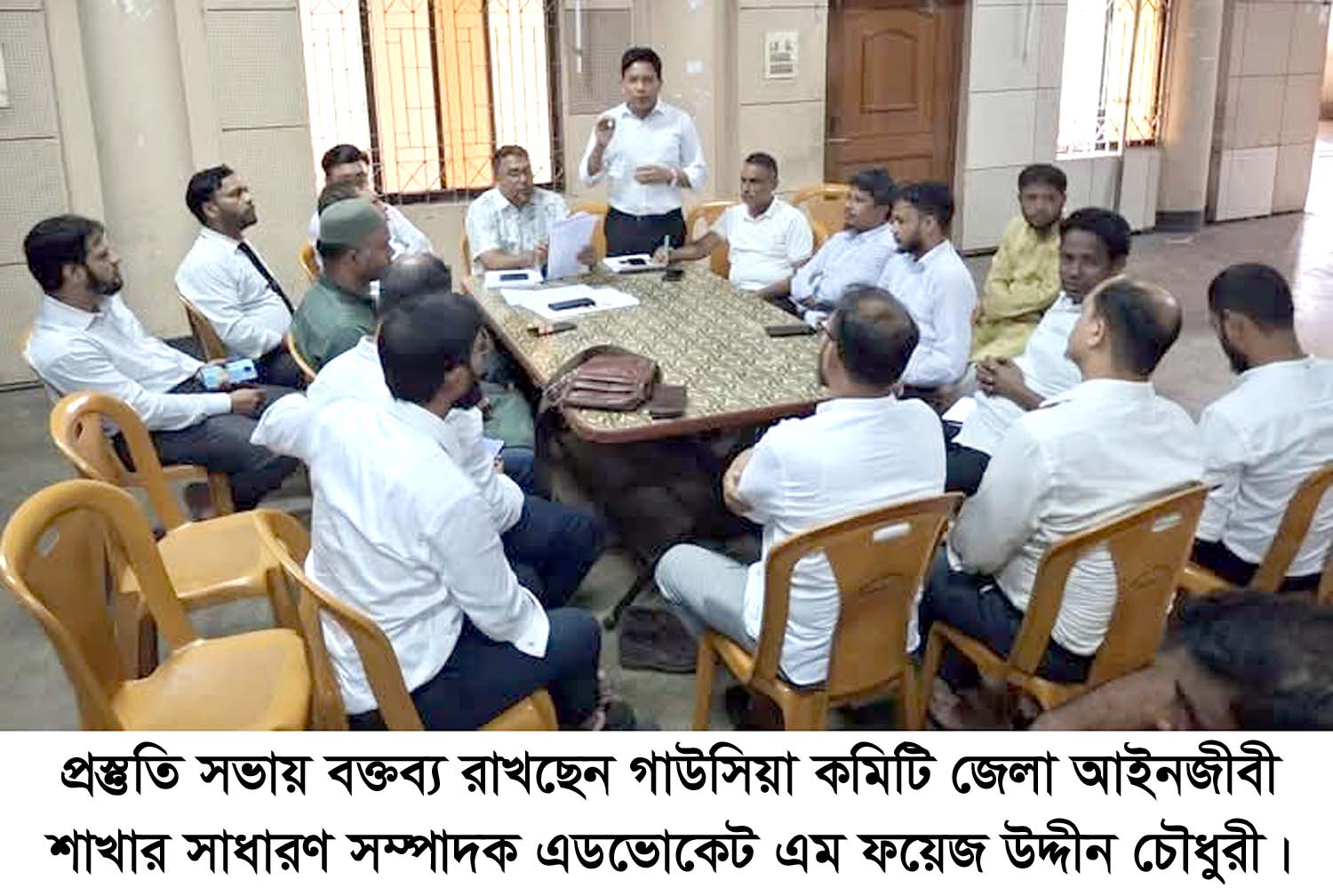 দেশচিন্তা ডেস্ক: গাউসিয়া কমিটি বাংলাদেশ চট্টগ্রাম জেলা আইনজীবী শাখার ব্যবস্থাপনায় আগামী ১৫ অক্টোবর’২৫ বুধবার পবিত্র ঈদে মিলাদুন্নবী (দ:) উদযাপন ও ফাতেহা-ই-ইয়াজদাহুম উপলক্ষে ঈদো মিলাদুন্নবী (দ.) মাহফিল-২০২৫ অনুষ্ঠিত হবে। এ উপলক্ষে প্রস্তুতি সভা গত ১২ অক্টোবর’২৫ রবিবার বিকালে আইনজীবী অডিটোরিয়ামে ঈদে মিলাদুন্নবী (দ:) মাহফিল প্রস্তুতি কমিটির আহবায়ক এডভোকেট মুহাম্মদ দেলোয়ার হোসেনের সভাপতিত্বে অনুষ্ঠিত হয়। এতে স্বাগত বক্তব্য রাখেন প্রস্তুতি কমিটির সচিব এডভোকেট মুহাম্মদ মোজাম্মেল হক ফারুকী। এডভোকেট মুহাম্মদ ইমরান খান রাজ ও এডভোকেট মুহাম্মদ আরিফ উদ্দীন চৌধুরীর যৌথ পরিচালনায় বক্তব্য রাখেন, গাউসিয়া কমিটি চট্টগ্রাম জেলা আইনজীবী শাখার সভাপতি বিজ্ঞ সিনিয়র আইনজীবী এডভোকেট মুহাম্মদ লিয়াকত আলী, সাধারণ সম্পাদক এডভোকেট এম.ফয়েজ উদ্দীন চৌধুরী। সভায় অন্যান্যদের মধ্যে উপস্থিত ছিলেন, এডভোকেট মুহাম্মদ শরিফ, এডভোকেট মুহাম্মদ ইকবাল, এডভোকেট মাসুদুল আলম বাবলু, এডভোকেট মোজাম্মেল হক, এডভোকেট সৈয়দ মোতাহের হোসেন রাসিফ, এডভোকেট মুহাম্মদ সাইফুদ্দীন মানিক, এডভোকেট মুহাম্মদ নুর হোসেন, এডভোকেট দিদারুল আলম টিপু, এডভোকেট এডিএম আরুছুর রহমান, এডভোকেট রবিউল আলম, এডভোকেট সৈয়দ মুহাম্মদ শাহেদ উল্লাহ, এডভোকেট মুহাম্মদ সুলতান মহিউদ্দীন, এডভোকেট মুহাম্মদ নেজাম উদ্দীন, এডভোকেট মুহাম্মদ হাবিব উল্লাহ, এডভোকেট মুহাম্মদ ফরিদুল ইসলাম, এডভোকেট মুবিনুল হক মুন্না, এডভোকেট মুহাম্মদ শাহাদাৎ হোসাইন, এডভোকেট ফোরকান আল মামুন, এডভোকেট মুহাম্মদ মমিন উদ্দীন, মুহাম্মদ রোকন উদ্দীন জুয়েল, জিএম শাহাদত হোসাইন মানিক, মুহাম্মদ এমদাদুল আলম ইমন প্রমুখ। বক্তারা বলেন, মানবতার মুক্তির দিশারী রাসূল (দ.) এর আদর্শ বর্তমান মানব সমাজে প্রতিষ্ঠিত হলে বিশ্বে শান্তি ফিরে আসবে। এজন্য ঈদে মিলাদুন্নবী (দ.) মাহফিল করা মুসলমানদের জন্য জরুরী। আগামী ১৫ অক্টোবর’২৫ অনুষ্ঠিয় মিলাদ মাহফিলে মূখ্য আলোচক থাকবেন, আনজুমানের মূখপাত্র এডভোকেট মোছাহেব উদ্দীন বখতিয়ার। বিশেষ আলোচক থাকবেন,শায়খ আল্লামা মুহাম্মদ জয়নুল আবেদীন কাদেরী (মা:জি:আ)। অতিথি থাকবেন, বাংলাদেশ বার কাউন্সিল এর সাবেক-বর্তমান সদস্য, চট্টগ্রাম জেলা আইনজীবী সমিতির সাবেক-বর্তমান সভাপতি ও সাধারণ সম্পাদকবৃন্দ। নাতে রাসুল (দরূদ) পরিবেশন করবেন, শায়ের মুহাম্মদ হারুনুর রশিদ কাদেরী। উক্ত মিলাদ মাহফিলে সংশ্লিষ্টদের উপস্থিত থাকার জন্য অনুরোধ করেছেন,প্রস্তুতি কমিটির আহবায়ক এডভোকেট মুহাম্মদ দেলোয়ার হোসেন ও সদস্য সচিব এডভোকেট মুহাম্মদ মোজাম্মেল হক ফারুকী।