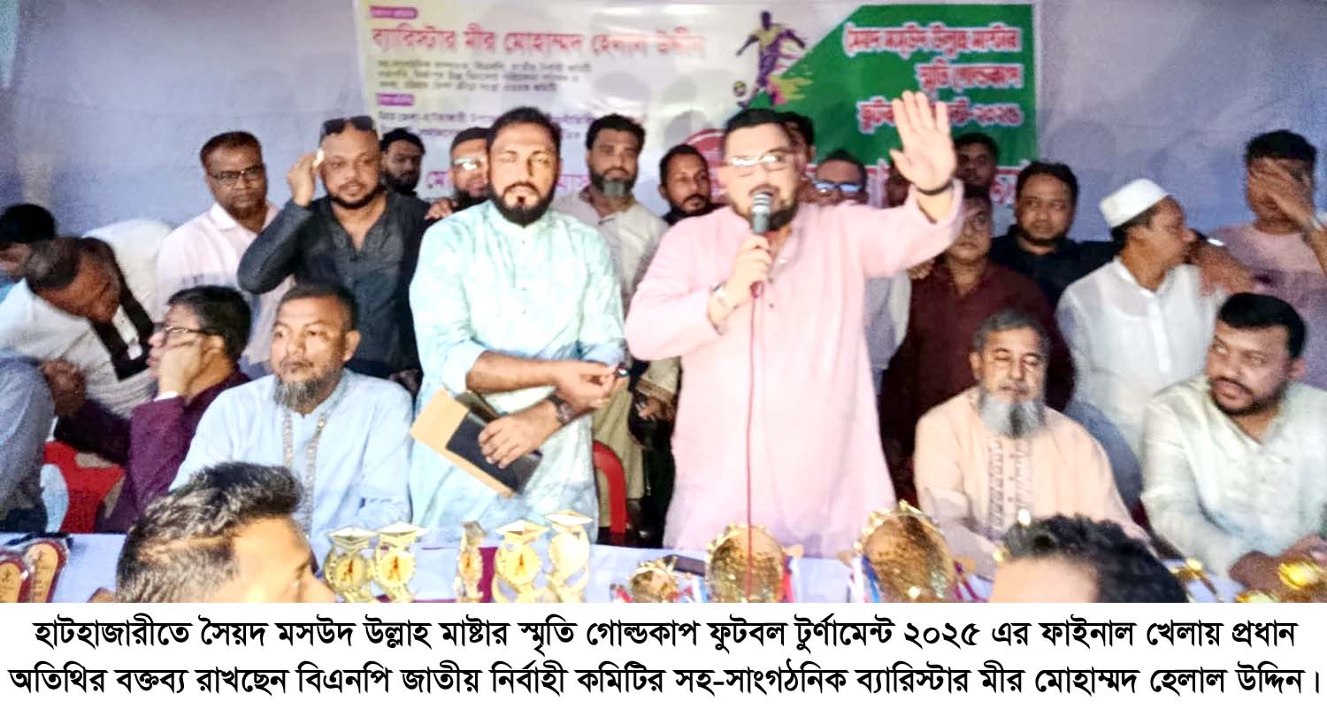 দেশচিন্তা ডেস্ক: বাংলাদেশ জাতীয়তাবাদী দলের জাতীয় নির্বাহী কমিটির সহ-সাংগঠনিক সম্পাদক (চট্টগ্রাম বিভাগ) ও চট্টগ্রাম জেলা ক্রীড়া সংস্থার এডহক কমিটির সদস্য ব্যারিস্টার মীর মোহাম্মদ হেলাল উদ্দীন বলেন-ফুটবল খেলা সারা বিশ্বে জনপ্রিয়। এ জনপ্রিয় খেলাকে বাংলাদেশের প্রান্তিক পর্যায়ে পৌঁছানোর জন্য বিএনপির ভারপ্রাপ্ত চেয়ারম্যান তারেক রহমান যুগউপযোগী কার্যক্রম গ্রহণ করেছেন। তার ধারাবাহিকতায় হাটহাজারীতে একই কার্যক্রম অব্যাহত রেখে যাচ্ছি। হাটহাজারীকে তৃণমূল পর্যায়ে ক্রীড়াঙ্গণকে ঢেলে সাজানোর জন্য সকল ছোট বড় সকল খেলার মাঠকে উন্নয়ন কার্যক্রমের মাধ্যমে খেলার উপযোগী করে গড়ে তোলা হবে। প্রত্যেক সচেতন নাগরিককে বুঝা উচিত ক্রীড়াঙ্গণকে শক্তিশালী করার মাধ্যমে সমাজের সকল বৈষম্য দূর করা সম্ভব বলে তিনি উল্লেখ করেন। গতকাল বিকাল ৪ ঘটিকার সময় উত্তর চট্টলার ঐতিহ্যবাহী হাটহাজারী উপজেলার একমাত্র ক্লাব চট্টগ্রাম জেলা ফুটবল এসোসিয়েশনের অনুমোদনপ্রাপ্ত সামাজিক, সাংস্কৃতিক, শিক্ষা ও ক্রীড়া প্রতিষ্ঠান “মির্জাপুর খেলোয়াড় কল্যাণ সমিতি” কর্তৃক আয়োজিত সংগঠনের সাবেক সভাপতি ও আলোকিত হাটহাজারী উন্নয়ন ফোরামের চেয়ারম্যান সৈয়দ মোস্তফা আলম মাসুম’র সভাপতিত্বে সৈয়দ মসউদ উল্লাহ মাস্টার স্মৃতি গোল্ডকাপ টুর্ণামেন্ট ২০২৫ এর ফাইনাল খেলায় পুরস্কার বিতরণের প্রাক্কালে প্রধান অতিথির বক্তব্যে এ কথা বলেন। উক্ত খেলায় বিশেষ অতিথি হিসেবে উপস্থিত ছিলেন হাটহাজারী উপজেলা বিএনপির আহ্বায়ক আলহাজ্ব নুর মোহাম্মদ, যুগ্ম আহ্বায়ক মুহাম্মদ সেলিম চেয়ারম্যান, কেন্দ্রীয় জাসাসের আহ্বায়ক কমিটির সদস্য মুহাম্মদ আমিনুল ইসলাম, চট্টগ্রাম মহানগর যুবদলের সাবেক সহ-সভাপতি ও বেসরকারি কারা পরিদর্শক মুহাম্মদ আব্দুর রাজ্জাক, মির্জাপুর উচ্চ বিদ্যালয়ের প্রধান শিক্ষক আতিকুল ইসলাম, জেলা বিএনপির সাবেক নেতা এস.এম. ফারুক হোসেন, চট্টগ্রাম উত্তর জেলা যুবদলের যুগ্ম সম্পাদক সাখাওয়াত হোসেন শিমুল, হাটহাজারী পৌরসভা বিএনপির যুগ্ম আহ্বায়ক এড. রিয়াদ, চট্টগ্রাম উত্তর জেলা ছাত্রদলের সাবেক সাধারণ সম্পাদক মনিরুল ইসলাম জনি, জেলা ছাত্রদলের সভাপতি মুহাম্মদ তকিবুল হাসান তকি, জেলা জাসাসের সভাপতি মুহাম্মদ সাইফুল ইসলাম টুটুল, মির্জাপুর ইউনিয়ন বিএনপির আহ্বায়ক সৈয়দ আব্দুল জব্বার, নাঙ্গল মোড়া ইউনিয়ন বিএনপির আহ্বায়ক মুহাম্মদ সালাহউদ্দিন আলী। মির্জাপুর খেলোয়াড় কল্যাণ সমিতির সভাপতি মুহাম্মদ ইসহাক মিয়া ও যুগ্ম সম্পাদক ইফতেখার হোসেন জনির সঞ্চালনায় অন্যান্যদের মধ্যে উপস্থিত ছিলেন জেলা কৃষক দলের যুগ্ম আহ্বায়ক আনোয়ার হোসেন উজ্জ্বল, উপজেলা কৃষক দলের আহ্বায়ক মুহাম্ম