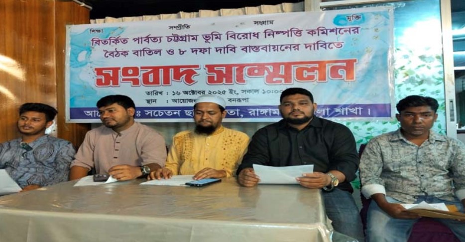বৃহস্পতিবার (১৬ অক্টোবর) সকাল ১১টায় রাঙামাটি শহরের এক রেস্তোরাঁয় আয়োজিত সংবাদ সম্মেলনে এই কর্মসূচি ঘোষণা করেন পিসিসিপি রাঙামাটি জেলা সভাপতি মো. তাজুল ইসলাম তাজ।