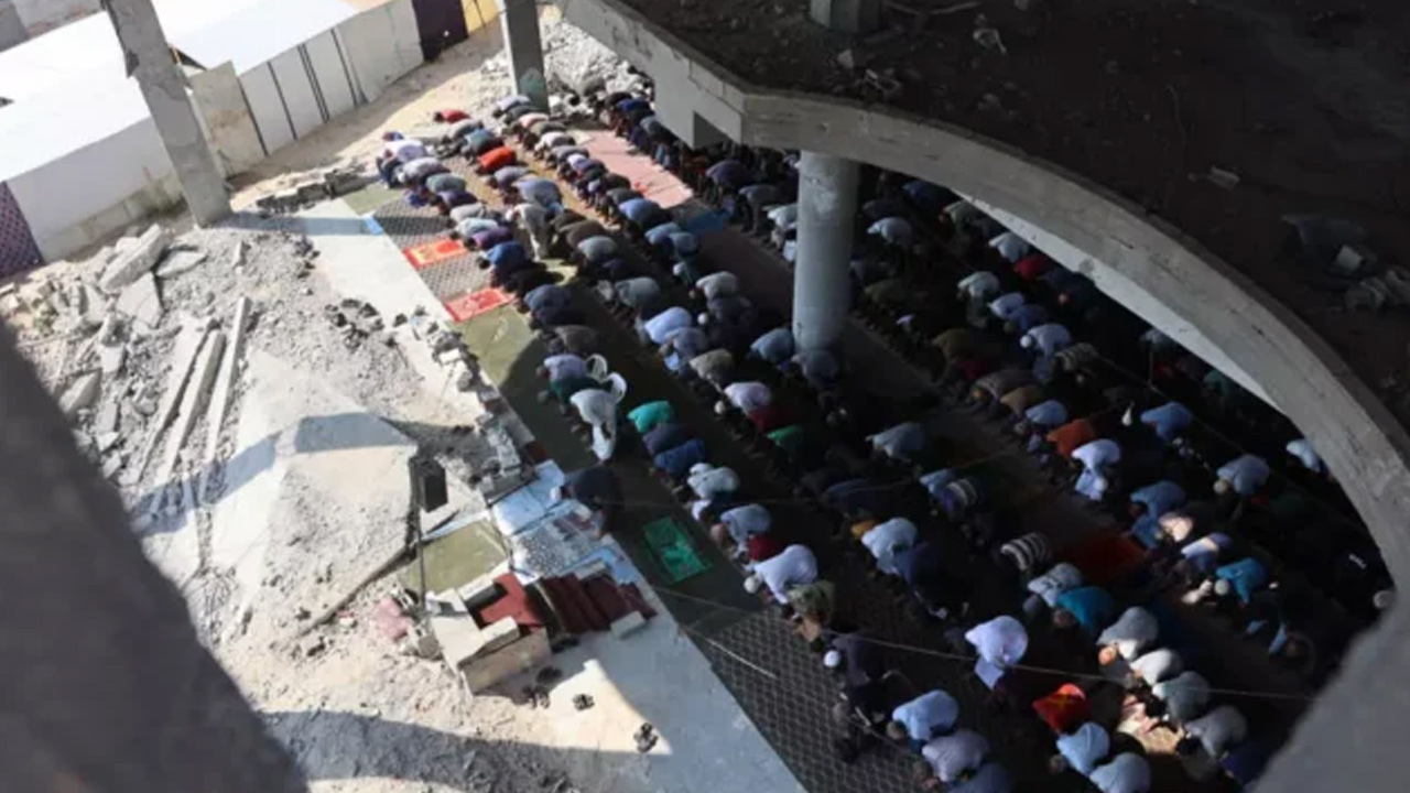 দক্ষিণ গাজার খান ইউনিস শহরের আলবানী মসজিদের ভগ্নাবশেষেও শুক্রবার নামাজ পড়েন শত শত ফিলিস্তিনি। দেয়াল ভেঙে পড়া, ছাদ ধ্বসে যাওয়া সেই মসজিদে এক ইমাম লাউডস্পিকারে খুতবা দেন, আর উপস্থিতরা চোখ মুছে দোয়ায় মগ্ন হন।