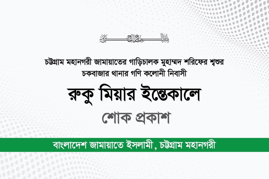 চট্টগ্রাম মহানগরী জামায়াতের গাড়িচালক মুহাম্মদ শরিফের শ্বশুরের ইন্তেকালে মহানগরী জামায়াতের শোক