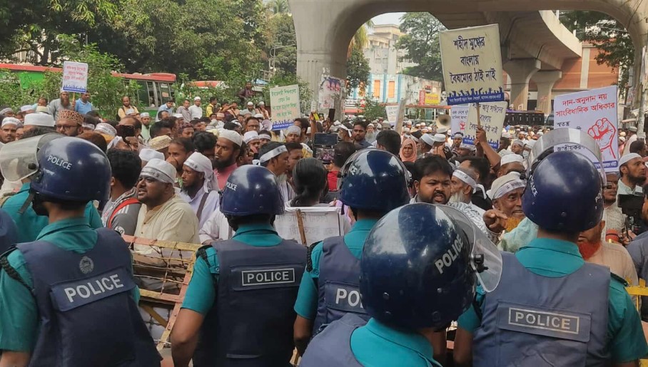 দেশচিন্তা ডেস্ক: অনুদানভুক্ত ও অনুদানবিহীন সব স্বতন্ত্র ইবতেদায়ী মাদ্রাসা জাতীয়করণের ঘোষণার দ্রুত বাস্তবায়নসহ ৫ দাবিতে স্বতন্ত্র ইবতেদায়ী মাদ্রাসা শিক্ষকদের পদযাত্রা আটকে দিয়েছে পুলিশ।
