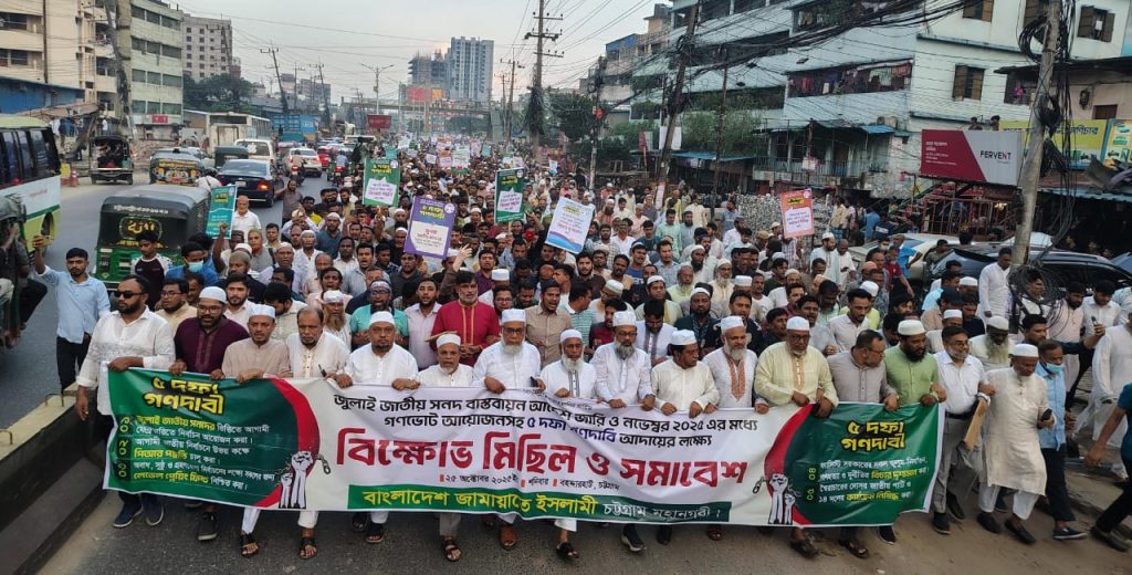 লক্ষ্যে চট্টগ্রাম মহানগরী জামায়াতে উদ্যােগে আয়োজিত চট্টগ্রাম বহদ্দারহাট মোড়ে এক সমাবেশে সভাপতির বক্তব্যে তিনি এসব কথা বলেন।