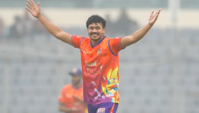 আগের ওভারে ১৭ রান খরচ করলেও ১৩তম ওভারে বল করতে এসে মাত্র ২ রান খরোয় ক্যারিবীয় টপঅর্ডার দুই ব্যাটসম্যানকে সাজঘরে ফেরান তাসকিন।