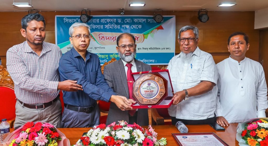 শেষে উপাচার্য প্রফেসর ড. মোহাম্মদ লুৎফুর রহমান অফিসার সমিতির পক্ষ থেকে বিদায়ি ট্রেজারার প্রফেসর ড. মো: কামাল-কে ক্রেস্ট ও উপহার প্রদান করেন। অনুষ্ঠানে মানপত্র পাঠ ও হস্তান্তর করেন প্রধান প্রকৌশলী অচিন্ত কুমার চক্রবর্ত্তী।