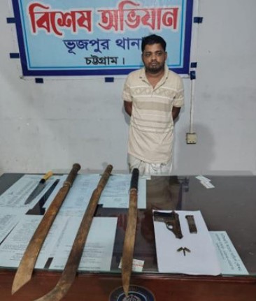 তার স্বীকারোক্তির ভিত্তিতে অভিযান চালিয়ে একটি পিস্তল, দুটি গুলি, একটি রামদা ও একটি কিরিচ উদ্ধার করা হয়।