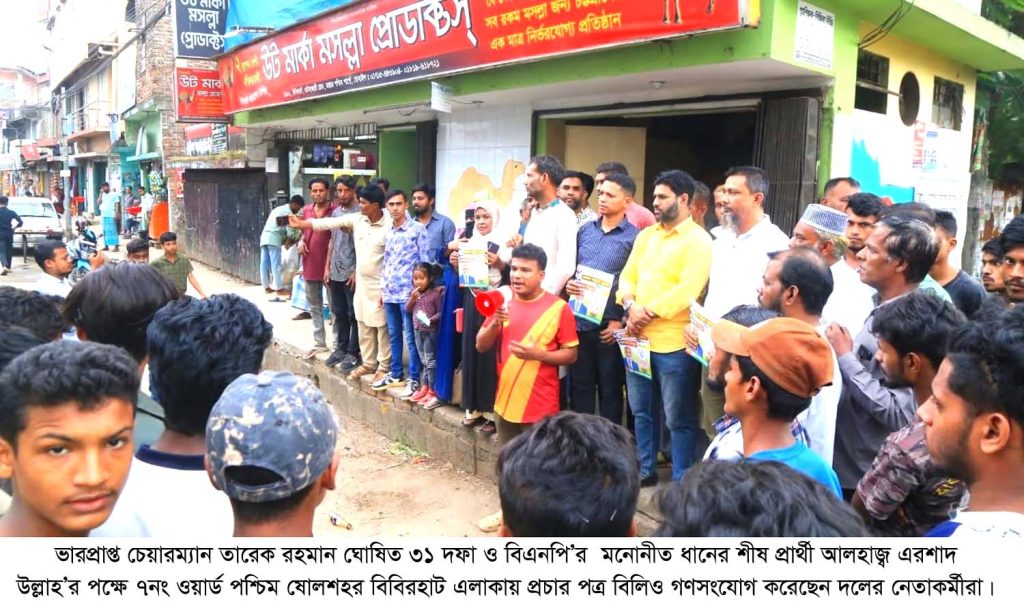 দেশচিন্তা ডেস্ক: দলের ভারপ্রাপ্ত চেয়ারম্যান তারেক রহমান কর্তৃক ৩১ দফা এবং চট্টগ্রাম ৮ সংসদীয় আসনে বিএনপি’র দলীয় মনোনীত প্রার্থীও মহানগর বিএনপির আহবায়ক আলহাজ্ব এরশাদ উল্লাহ’র সমর্থনে, বাংলাদেশ জাতীয়তাবাদী মৎস্যজীবী দল পাঁচলাইশ থানার পক্ষ থেকে গণ সংযোগ ও প্রচারপত্র বিতরণ কর্মসূচি অনুষ্ঠিত হয়। চট্টগ্রাম নগরীর ৭নং ওয়ার্ড পশ্চিম ষোলশহরের বিবিরহাট কাঁচাবাজার থেকে শুরু হয়ে পরবর্তী মুরাদপুর রহমান টাওয়ার সংলগ্ন ১ নং রেলগেট চত্বরে গিয়ে শেষ হয়। রাষ্ট্রের আইন কর্মকর্তা ও জাতীয়তাবাদী ছাত্রদল চট্টগ্রাম মহানগরের প্রাক্তন সহ-সভাপতি এডভোকেট এনামুল হক এনামের নেতৃত্বে পাঁচলাইশ থানা মৎস্যজীবী দলের আহ্বায়ক মোঃ মামুনের সভাপতিত্বে সদস্য সচিব শফিউল আলম শফীর পরিচালনায় অনুষ্ঠিত হয়। এতে আরো উপস্থিত ছিলেন, বিএনপি নেতা মোঃ মাহবুব আলম, নারী ও শিশু অধিকার ফোরাম চট্টগ্রাম মহানগরের দাপ্তরিক দায়িত্বপ্রাপ্ত এবং জিয়া স্মৃতি পাঠাগার চট্টগ্রামের প্রচার সম্পাদক সাজ্জাদ হোসেন খান, জাতীয়তাবাদী সাইবার দল চট্টগ্রাম মহানগরের সাধারণ সম্পাদক, সাবেক ছাত্রনেতা মোঃ শাহেদ আলম, জাতীয়তাবাদী সাইবার দল চট্টগ্রাম মহানগরের সহ-সভাপতি জাবেদ ওমর,সর্দার শামসুল আলম কোম্পানি, পাঁচলাইশ থানা সাইবার দলের সমন্বয়ক আব্দুর রহিম সাব্বির, মহিলা দলের সভানেত্রী আলেয়া বেগম, বিএনপি নেতা কামাল উদ্দিন, মোহাম্মদ সেলিম চৌধুরী, নুরুল ইসলাম গুরুদা, মোঃ মঞ্জু, জাহিদ সারোয়ার, মোহাম্মদ নুর ইসলাম, মোহাম্মদ নাসিরউদ্দীন, জাতীয়তাবাদী সাইবার দল চট্টগ্রাম মহানগরের যুগ্ম সম্পাদক মেহেদী হাসান, মোঃ জসিম উদ্দিন, মোঃ মান্নান, মোঃ রিপন মিয়া, হরিশচন্দ্র, জাতীয়তাবাদী সাইবার দল চট্টগ্রাম মহানগরের প্রচার সম্পাদক মাহাতাব উদ-দোলা মেহেদী, অপু শিং, জয়ন্ত, হোসেন মোহোর আলী, আব্দুল মতিন, জাকির হোসেন, মোঃ নাছির আশিকুজ্জামান আশিক, মোহাম্মদ রাব্বি, সজীব বড়ুয়া, জ্যাকসন বড়ুয়াসহ স্থানীয় বিএনপি, যুবদল, ছাত্রদল, শ্রমিকদল ও স্বেচ্ছাসেবক দলের নেতৃবৃন্দ প্রমুখ।