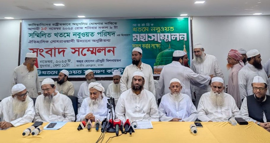 দেশচিন্তা ডেস্ক: বাংলাদেশে কাদিয়ানীদের রাষ্ট্রীয়ভাবে অমুসলিম ঘোষণাসহ চার দফা দাবি জানিয়েছে সম্মিলিত খতমে নবুয়ত পরিষদ বাংলাদেশ।