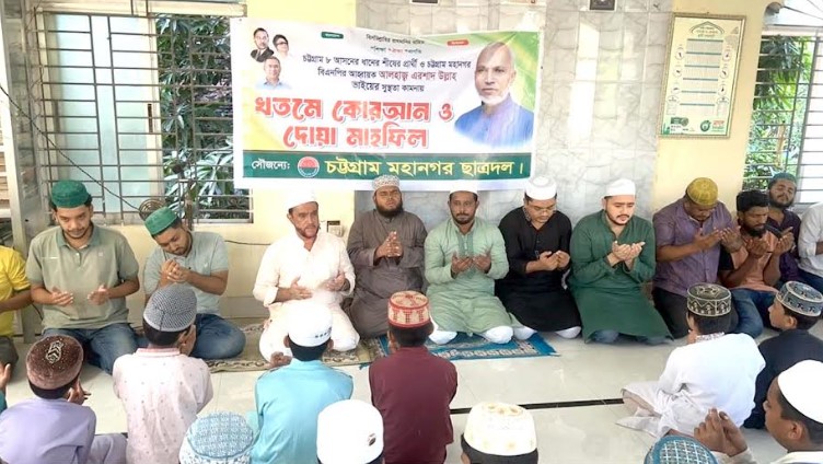 দেশচিন্তা ডেস্ক: সন্ত্রাসী হামলায় আহত চট্টগ্রাম মহানগর বিএনপির আহবায়ক ও চট্টগ্রাম-৮ আসনে ধানের শীষের প্রার্থী জননেতা আলহাজ্ব এরশাদ উল্লাহ’র শারীরিক সুস্থতা কামনায় গত ৮ অক্টোবর চট্টগ্রাম মহানগর ছাত্রদলের উদ্যোগে চট্টগ্রাম মহানগর ছাত্রদলের যুগ্ম-আহবায়ক মাহমুদুর রহমান বাবু’র সভাপতিত্বে খতমে কোরআন ও দোয়া মাফিল অনুষ্ঠিত হয়। উক্ত দোয়া মাহফিলে প্রধান অতিথি হিসেবে উপস্থিত ছিলেন চট্টগ্রাম মহানগর বিএনপির যুগ্ম আহবায়ক আর ইউ চৌধুরী শাহীন। এছাড়া ও আরো উপস্থিত ছিলেন নগর ছাত্রদল নেতা আশিকুর রহমান, মোহাম্মদ রিয়াজ উদ্দিন চৌধুরী, ফারুক, পাঁচলাইশ থানা ছাত্রদলের যুগ্ম-আহবায়ক রবিউল আলম ফরহাদ, মিশকাতুর রহমান, ওয়াযেদ আলী মাসুদ, ৭নং ওয়ার্ড সেচ্ছাসেবক দল সদস্য নুরনবী রুবেল, ৪ নং ওয়ার্ড সেচ্ছাসেবক দল নেতা মোহাম্মদ জনি, ৭নং ওয়ার্ড যুবদল নেতা মোহাম্মদ সুমন সহ ৪৩নং ওয়ার্ড ছাত্রদল নেতা শাকি, ৭নং ওয়ার্ড ছাত্রদল নেতা জনি, রনি, সিরাজ সহ নেতৃবৃন্দ উপস্থিত ছিলেন।