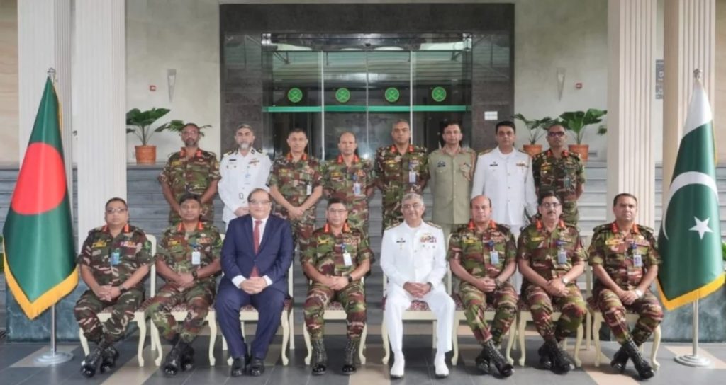 পাকিস্তান নৌবাহিনীর প্রধান রাজধানীর বনানীতে নৌবাহিনী সদর দপ্তরে বাংলাদেশ নৌবাহিনীর প্রধান অ্যাডমিরাল এম নাজমুল হাসানের সঙ্গে সৌজন্য সাক্ষাৎ করেন।