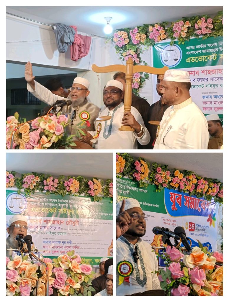 ১৪ নভেম্বর, ২০২৫ ( শুক্রবার ) বিকালে ত্রয়োদশ জাতীয় সংসদ নির্বাচনে চট্টগ্রাম -১ (মীরসরাই) আসনে দাঁড়িপাল্লা প্রতীকের সমর্থনে যুব সমাবেশে প্রধান বক্তার বক্তব্যে এভাবে যুবকদেরকে নির্বাচনী কর্মকান্ডে উদ্বুদ্ধ করেন বাংলাদেশ জামায়াতে ইসলামীর সংসদ সদস্য মনোনীত প্রার্থী, গণপ্রজাতন্ত্রী বাংলাদেশ সরকারের ডেপুটি এ্যটর্নি জেনারেল এ্যডভোকেট সাইফুর রহমান৷
