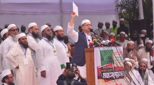 তিনি বলেন, যদি বাংলাদেশের রাষ্ট্র ক্ষমতায় সরকার পরিচালনার দায়িত্ব আল্লাহ রাব্বুল আলামিন আমাদের দেন… আপনাদের এখানে আজকে যে সমস্ত দাবি-দাওয়া আছে, আমরা সব দাবি-দাওয়া এই প্রস্তাবের পক্ষে ইনশাআল্লাহ জাতীয় সংসদে আলাপ আলোচনার মাধ্যমে সব ব্যবস্থা গ্রহণ করা হবে।
