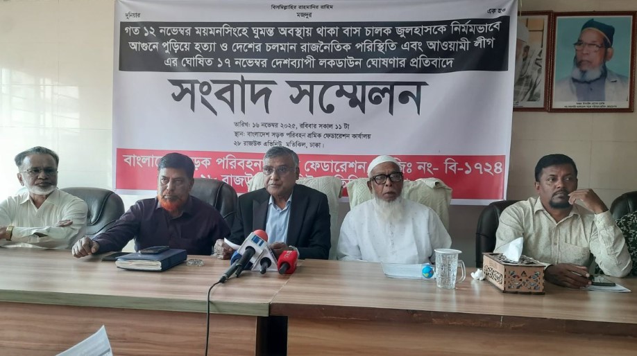 ফেডারেশনের ভারপ্রাপ্ত সাধারণ সম্পাদক বলেন, মানবতাবিরোধী হত্যা মামলায় পতিত আওয়ামী লীগ নেত্রী শেখ হাসিনার রায় ঘোষণার তারিখের সঙ্গে সামঞ্জস্য রেখে ১৩ নভেম্বর আওয়ামী লীগ ঢাকাসহ সারা দেশে লকডাউন কর্মসূচির ডাক দেয়। এর মাধ্যমে তারা নির্বাচন বানচাল ও দেশ অস্থিতিশীল করার ষড়যন্ত্র করছে। ওই লকডাউন চলাকালে সারা দেশে প্রায় ২০টি পরিবহন অগ্নিসন্ত্রাসের শিকার হয় এবং ময়মনসিংহে একটি বাসে আগুন দিয়ে পরিবহন শ্রমিক জুলহাস ড্রাইভারকে নির্মমভাবে হত্যা করা হয়। এর প্রতিবাদে ঢাকার মহাখালী, গাবতলী, সায়েদাবাদ, গুলিস্তান, ফুলবাড়িয়াসহ বিভিন্ন স্থানে পরিবহন শ্রমিকরা বিক্ষোভ মিছিল করেন এবং একই কর্মসূচি সারাদেশে পালিত হয়।