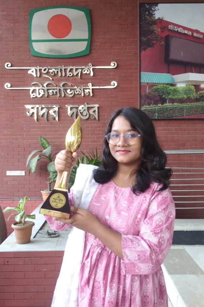 পুরস্কারে ভরপুর বাণীর সাফল্যের ঝুলি, জাতীয় মঞ্চে চ্যাম্পিয়ন হওয়ার সুবাদে বাণী পেয়েছে নতুন কুঁড়ির চ্যাম্পিয়ন ট্রফি, অর্জন সনদ (সার্টিফিকেট), দুই লক্ষ টাকার চেক ও সবচেয়ে গুরুত্বপূর্ণ বাংলাদেশ টেলিভিশনের তালিকাভুক্ত শিল্পী হওয়ার স্বীকৃতি।
