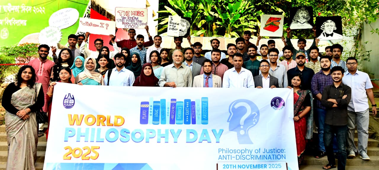 দেশচিন্তা ডেস্ক: বিশ্ব দর্শন দিবস উপলক্ষ্যে চট্টগ্রাম বিশ্ববিদ্যালয়ের দর্শন বিভাগ এবং চিটাগং ইউনিভার্সিটি ফিলোসোফি ক্লাবের (সিইউপিসি) যৌথ উদ্যােগে আজ বৃহস্পতিবার (২০ নভেম্বর ২০২৫) "ন্যায়বিচারের দর্শন: বৈষম্য বিরোধীনীতি" প্রতিপাদ্যে দিনব্যাপী ফিলোসোফি উৎসব উদযাপিত হয়। সকাল ১০টায় বর্ণাঢ্য র্যালির মাধ্যমে অনুষ্ঠানের শুভ সূচনা হয়। এরপর চবি উন্মুক্ত মঞ্চে আলোচনা সভা অনুষ্ঠিত হয়। আলোচনা সভায় প্রধান অতিথি হিসেবে উপস্থিত ছিলেন চট্টগ্রাম বিশ্ববিদ্যালয়ের মাননীয় উপ-উপাচার্য (একাডেমিক) প্রফেসর ড. মোহাম্মদ শামীম উদ্দিন খান।