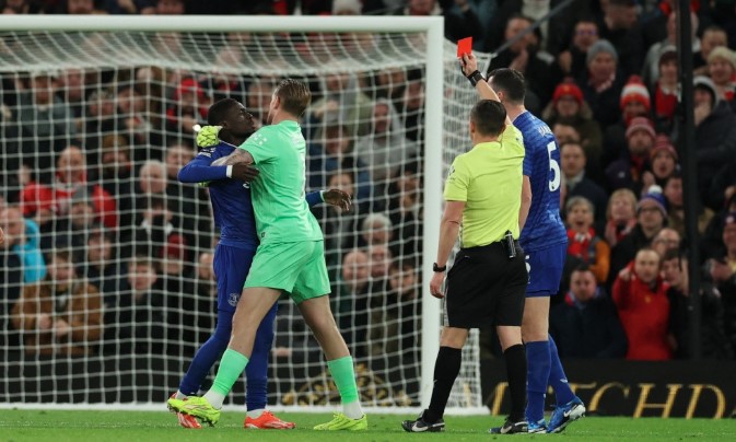 দেশচিন্তা ডেস্ক: ওল্ড ট্র্যাফোর্ডে অদ্ভুত এক ঘটনার জন্ম দিলেন এভারটনের ইদ্রিসা গুয়ে। ম্যাচের মাত্র ১৩তম মিনিটে নিজ দলের সঙ্গী মাইকেল কিনের মুখে চড় মেরে সরাসরি লাল কার্ড দেখেন সেনেগালের এই মিডফিল্ডার।