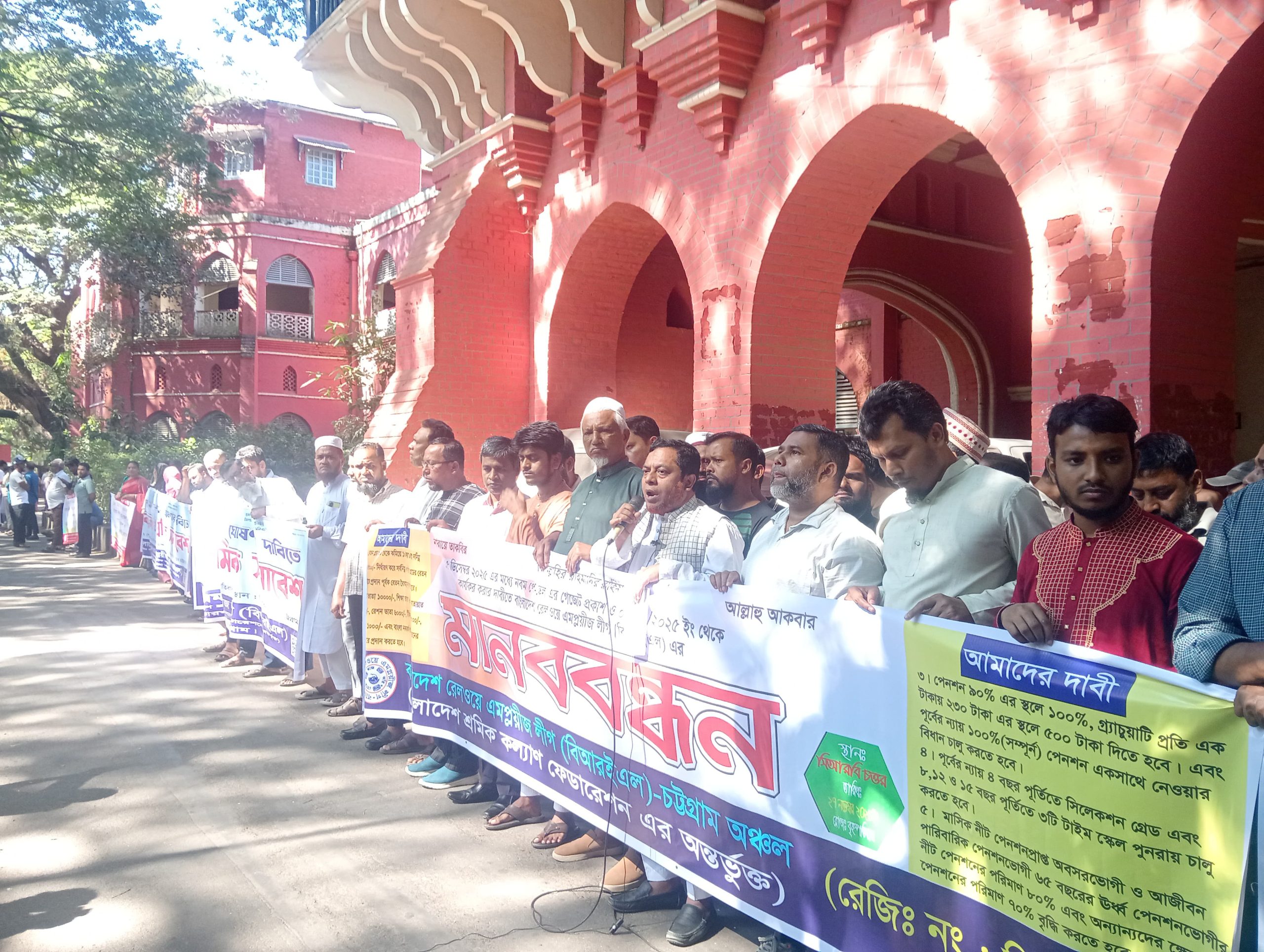 তিনি আজ বাংলাদেশ রেলওয়ে এমপ্লয়িজ লীগ (বিআরইএল)–চট্টগ্রাম অঞ্চলের উদ্যোগে সিআরবি চত্বরে এক বিশাল মানববন্ধনে প্রধান অতিথির বক্তব্যে এসব কথা বলেন। রেলওয়ে এমপ্লয়ীজ লীগের কেন্দ্রীয় সাধারণ সম্পাদক ও চট্টগ্রাম অঞ্চল সভাপতি মো: মনিরুল ইসলাম মজুমদার এর সভাপতিত্বে এবং আঞ্চলিক সেক্রেটারি এমরান হোসাইন এর সঞ্চালনায় এতে বিশেষ অতিথি ছিলেন বিআরইএল এর কেন্দ্রীয় কার্যকরী সভাপতি মো. সেলিম পাটওয়ারী, কেন্দ্রীয় সহ-সভাপতি আ: আজিজ, কেন্দ্রীয় দপ্তর সম্পাদক মো. আসাদুল্লাহ শিশির, কেন্দ্রীয় অর্থ সম্পাদক মো. মাহমুদুল হাসান। সিআরবি শাখার সভাপতি মোহাম্মদ আমানুল ইসলাম সহ অন্যান্য নেতৃবৃন্দ।