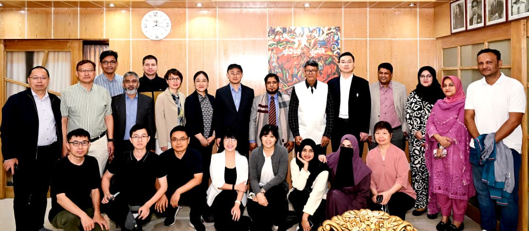 দেশচিন্তা ডেস্ক: চট্টগ্রাম বিশ্ববিদ্যালয় ইনস্টিটিউট অব মেরিন সায়েন্সেস আয়োজিত ৪ দিনব্যাপী (১-৪ ডিসেম্বর ২০২৫) ‘মেরিন ফিশারিজ অ্যান্ড ব্লু ইনোভেশন: সেইফগার্ডিং ওশান হারমোনি’ শীর্ষক আন্তর্জাতিক সম্মেলনে আগত চীন, রাশিয়া ও পাকিস্থানের গবেষকবৃন্দ চট্টগ্রাম বিশ্ববিদ্যালয়ের মাননীয় উপাচার্য প্রফেসর ড. মুহাম্মদ ইয়াহ্ইয়া আখতার এর সঙ্গে উপাচার্যের দপ্তরে আজ সোমবার (১ ডিসেম্বর ২০২৫) বেলা ১২টায় সাক্ষাত করেছেন। এসময় উপস্থিত ছিলেন চবি মাননীয় উপ-উপাচার্য (একাডেমিক) প্রফেসর ড. মোহাম্মদ শামীম উদ্দিন খান ও মাননীয় উপ-উপাচার্য (প্রশাসন) প্রফেসর ড. মো. কামাল উদ্দিন। সাক্ষাৎকালে তারা বাংলাদেশের সাথে চীন, রাশিয়া, পাকিস্থানের মধ্যেকার যৌথ গবেষণা ও একাডেমিক সহযোগিতা আরও জোরদার করার বিষয়ে মতবিনিময় করেন। এসময় চট্টগ্রাম বিশ্ববিদ্যালয়ের সাথে শিক্ষক ও শিক্ষার্থী বিনিময়, যৌথ গবেষণা এবং উচ্চ শিক্ষা বিষয়ে সহযোগিতা সম্প্রসারণের সম্ভাবনা নিয়ে আলোচনা হয়।