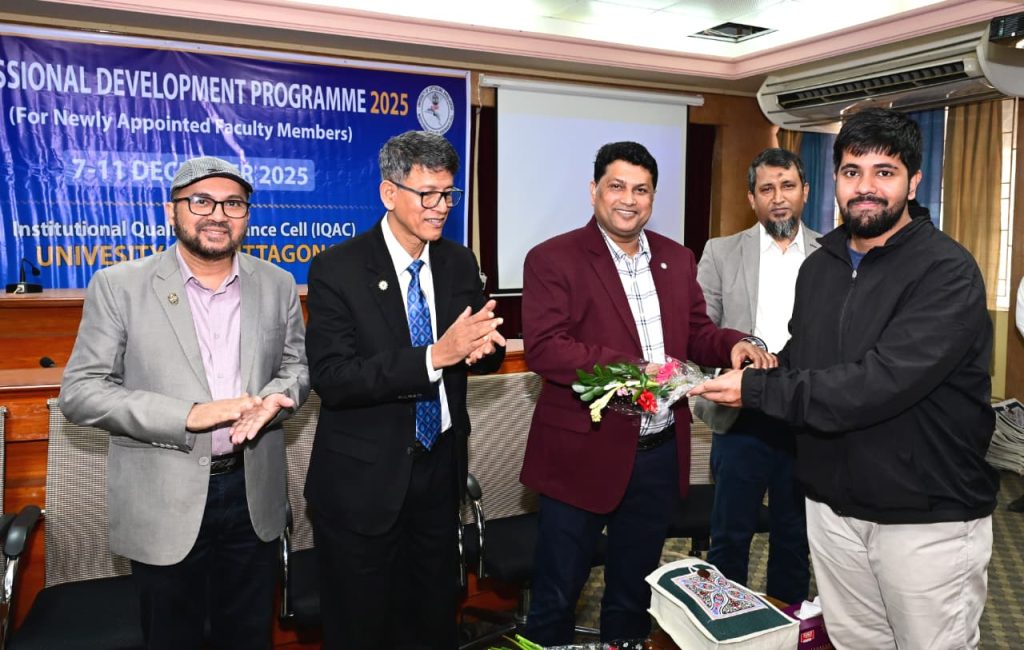 দেশচিন্তা ডেস্ক: চট্টগ্রাম বিশ্ববিদ্যালয় ইনস্টিটিউশনাল কোয়ালিটি এস্যুরেন্স সেলের (আইকিউএসি) উদ্যোগে বিশ্ববিদ্যালয়ের বিভিন্ন বিভাগ ও ইনস্টিটিউটে সম্প্রতি নিয়োগপ্রাপ্ত শিক্ষকদের পাঁচদিনব্যাপী (৭-১১ ডিসেম্বর) “Foundation Training Program For Professional Development” শীর্ষক এক প্রশিক্ষণের উদ্বোধনী অনুষ্ঠান আজ রবিবার (৭ ডিসেম্বর ২০২৫) সকাল ৯টায় চবি উপাচার্য দপ্তরের সম্মেলন কক্ষে অনুষ্ঠিত হয়। এতে প্রধান অতিথি হিসেবে উপস্থিত ছিলেন চট্টগ্রাম বিশ্ববিদ্যালয়ের মাননীয় উপাচার্য প্রফেসর ড. মুহাম্মদ ইয়াহ্ইয়া আখতার। বিশেষ অতিথি হিসেবে উপস্থিত ছিলেন মাননীয় উপ-উপাচার্য (প্রশাসন) প্রফেসর ড. মো. কামাল উদ্দিন এবং চবি রেজিস্ট্রার (ভারপ্রাপ্ত) প্রফেসর ড. মোহাম্মদ সাইফুল ইসলাম। আইকিউএসির পরিচালক প্রফেসর ড. মোহাম্মদ মোশাররফ হোসেনের সভাপতিত্বে উদ্বোধনী অনুষ্ঠানে সঞ্চালনা করেন আইকিউএসির অতিরিক্ত পরিচালক প্রফেসর ড. শাহাদাত হোছাইন।
