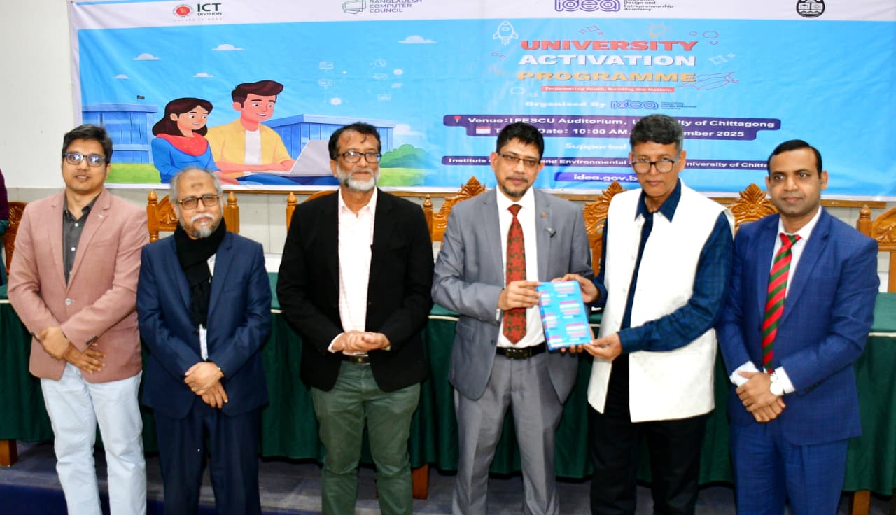দেশচিন্তা ডেস্ক: দেশের যুব সমাজকে উদ্ভাবনী চিন্তা ও উদ্যোক্তা হিসেবে গড়ে তোলার লক্ষ্যে তথ্য ও যোগাযোগ প্রযুক্তি (আইসিটি) বিভাগের অধীন বাংলাদেশ কম্পিউটার কাউন্সিল (বিসিসি) কর্তৃক বাস্তবায়িত ইনোভেশন ডিজাইন অ্যান্ড এন্টারপ্রেনারশিপ অ্যাকাডেমির (iDEA) আয়োজনে চট্টগ্রাম বিশ্ববিদ্যালয়ে আজ মঙ্গলবার (৯ ডিসেম্বর ২০২৫) বেলা ১২টায় 'ইউনিভার্সিটি অ্যাক্টিভেশন প্রোগ্রাম' অনুষ্ঠিত হয়। 'যুব সমাজকে ক্ষমতায়ন, জাতি গঠনে অংশগ্রহণ' প্রতিপাদ্যে iDEA-এর সার্বিক তত্ত্বাবধানে অনুষ্ঠানটি চট্টগ্রাম বিশ্ববিদ্যালয়ের ইনস্টিটিউট অব ফরেস্ট্রি অ্যান্ড এনভায়রনমেন্টাল সায়েন্সেস (IFESCU) অডিটোরিয়ামে অনুষ্ঠিত হয়।