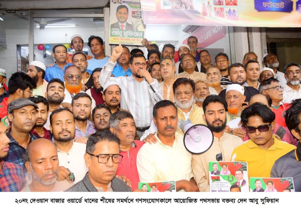 ২০নং দেওয়ান বাজার ওয়ার্ড বিএনপির আহবায়ক খন্দকার নুরুল ইসলামের সভাপতিত্বে ও সদস্য সচিব সাব্বির আহমেদের সঞ্চালনায় পথসভায় বিশেষ অতিথির বক্তব্য রাখেন চট্টগ্রাম মহানগর বিএনপির য্গ্মু আহবায়ক ইয়াছিন চৌধুরী লিটন, সদস্য আনোয়ার হোসেন লিপু, জাকির হোসেন, হেলাল চৌধুরী, এম আই চৌধুরী মামুন, ইউনুছ চৌধুরী হাকিম, এম এ হামিদ, গিয়াস উদ্দিন, নাজমুল হক নাজু, দিদারুল আলম স্বপন। বক্তব্য দেন হাসান আলি, মনসুর আলম, হাফিজুল ইসলাম মিলন, আসাদুর রহমান টিপু, মাহমুদ আলি,জামাল উদ্দিন, মো. হারুনর রশীদ, এন মো. রিমন, রুবেল চৌধুরী, কাজী মোহাম্মদ তানিম, মাহফুজুর রহমান মাসুম, মঈনুল ইসলাম আরমান,আরশে আজিম আরিফ, আব্বাস আলী খান, তাজ মোহাম্মদ, তোফাজ্জল হোসেন মানিক, মো. সাইফুদ্দিন, নাসির উদ্দিন, কাজল, মো. সবুর, মনির হোসেন, এরশাদ আলি, মো. ইয়াসিন, মো. সুমন, ওমর আলি রনি, মোঃ তৌহিদ, বাদশা চৌধুরী মো. সোলাইমান, আজগর আলী, মো. মুসা, রোম্মান হোসেন, এহসান আলি নকিব, সাকিব উল হোসাইন, টিপু সুলতান, সোহেল রানা, আরজু, শাকিল, আয়াজ বিন আলমগীর আবির, আবিদ আহসান খান, প্রিতম নন্দী প্রমুখ।
