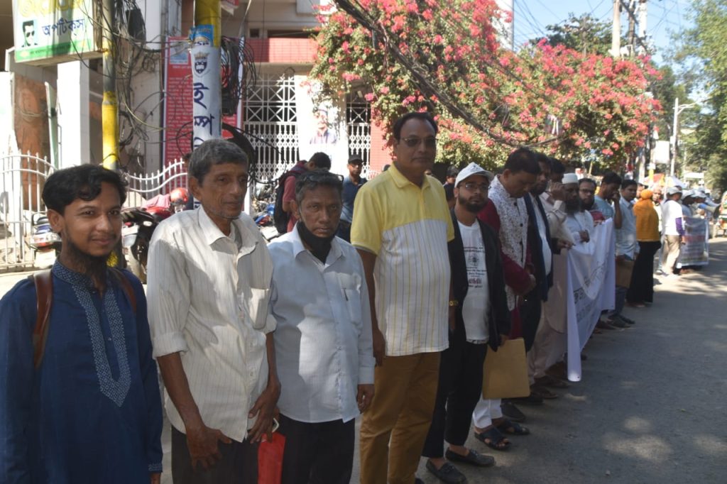 চট্টগ্রাম প্রেস ক্লাবের সামনে সকালে আয়োজিত মানববন্ধনে সভাপতিত্ব করেন এইচআরডি মুজিবুল্লাহ তুষার এবং সঞ্চালনায় ছিলেন মানবাধিকার কর্মী ওচমান জাহাঙ্গীর।