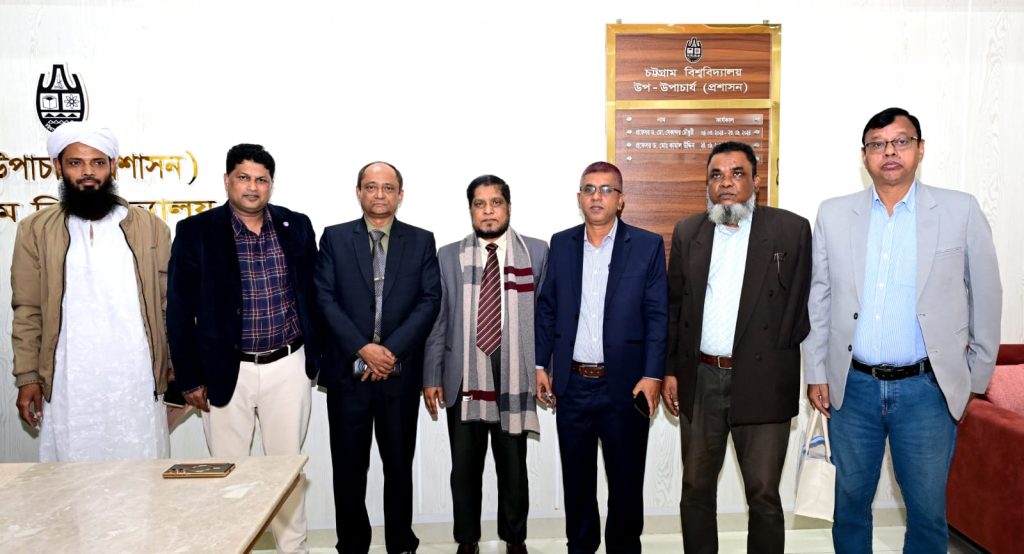 দেশচিন্তা ডেস্ক: চট্টগ্রাম বিশ্ববিদ্যালয়ের মাননীয় উপাচার্য প্রফেসর ড. মুহাম্মদ ইয়াহ্ইয়া আখতার এর সঙ্গে উপাচার্য দপ্তরে বুধবার (১০ ডিসেম্বর ২০২৫) বেলা ১২টায় সাক্ষাৎ করেছেন চট্টগ্রাম মাধ্যমিক ও উচ্চ মাধ্যমিক শিক্ষা বোর্ডের চেয়ারম্যার প্রফেসর ইলিয়াছ উদ্দিন আহম্মদ। পরবর্তীতে চট্টগ্রাম মাধ্যমিক ও উচ্চ মাধ্যমিক শিক্ষা বোর্ডের চেয়ারম্যার প্রফেসর ইলিয়াছ উদ্দিন আহম্মদ চবি মাননীয় উপ-উপাচার্য (একাডেমিক) প্রফেসর ড. মোহাম্মদ শামীম উদ্দিন খান ও মাননীয় উপ-উপাচার্য (প্রশাসন) প্রফেসর ড. মো. কামাল উদ্দিন এর সঙ্গে সাক্ষাৎ করেছেন।
