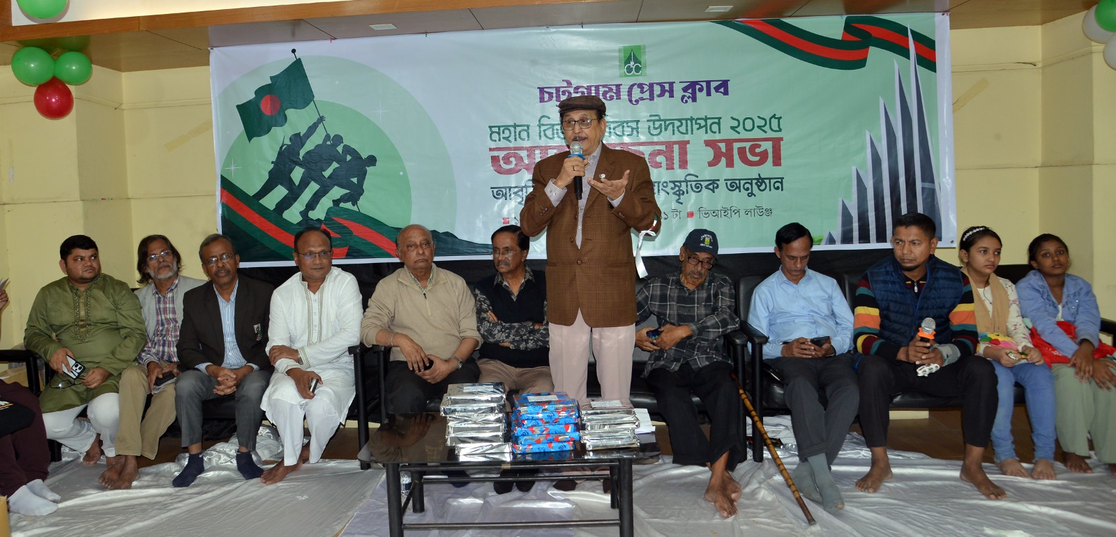 এ উপলক্ষ্যে আলোচনা সভা চট্টগ্রাম প্রেস ক্লাবের ভিআইপি লাউঞ্জে ক্লাবের সভাপতি জাহিদুল করিম কচির সভাপতিত্বে অনুষ্ঠান সঞ্চালনা করেন ক্লাবের ভারপ্রাপ্ত সাধারণ সম্পাদক মিয়া মো. আরিফ।