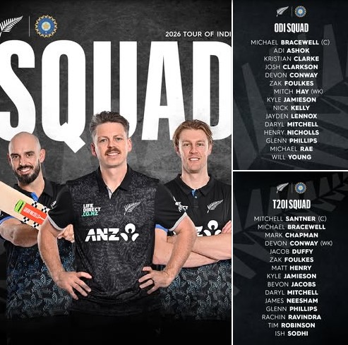আগামী ১১ জানুয়ারি থেকে ওয়ানডে দিয়ে ভারত সফর শুরু হবে নিউজিল্যান্ডের। তিন ম্যাচের ওয়ানডের পর ২১ জানুয়ারি থেকে টি-টোয়েন্টি সিরিজ খেলবে দুই দল। ক্রিকেটের সংক্ষিপ্ততম সংস্করণে প্রথমবার সুযোগ পেয়েছেন পেসার জেডেন লেনক্স, পেস বোলিং-অলরাউন্ডার ক্রিস্টিয়ান ক্লার্ক, লেগস্পিন অলরাউন্ডার আদিত্য অশোক ও ফাস্ট বোলার মাইকেল রে।