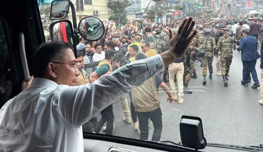 দেশচিন্তা ডেস্ক: দেশে ফিরেছেন বিএনপির ভারপ্রাপ্ত চেয়ারম্যান তারেক রহমান। হযরত শাহজালাল আন্তর্জাতিক বিমানবন্দরের ভিভিআইপি লাউঞ্জ থেকে বেরিয়ে পূর্বনির্ধারিত বাসে করে পূর্বাচলের ৩৬ জুলাই এক্সপ্রেসওয়ে (৩০০ ফিট) এলাকায় গণসংবর্ধনার সমাবেশস্থলে রওনা দিয়েছেন তিনি। তাকে একনজর দেখতে সড়কের পাশে অবস্থান নিয়েছেন সমর্থক ও নেতাকর্মীরা।