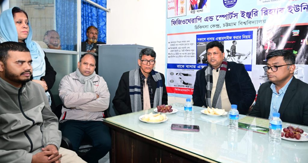 চবি মেডিকেল সেন্টারের “ফিজিওথেরাপি এন্ড স্পোর্টস ইঞ্জুরি রিহ্যাব ইউনিট” এর ফিজিওথেরাপিস্ট জনাব মোহাম্মদ কামরুজ্জামান এর সঞ্চালনায় এসময় আরও উপস্থিত ছিলেন চবি চিফ মেডিকেল অফিসার (ভারপ্রাপ্ত) ডা. মোহাম্মদ আবু তৈয়ব, চাকসুর ভিপি ইব্রাহীম হোসেন রনি ও অন্যান্য প্রতিনিধিবৃন্দ, মেডিকেল সেন্টারের ডাক্তারগণ, কর্মকর্তা-কর্মচারী ও সংশ্লিষ্ট ব্যক্তিবর্গ।