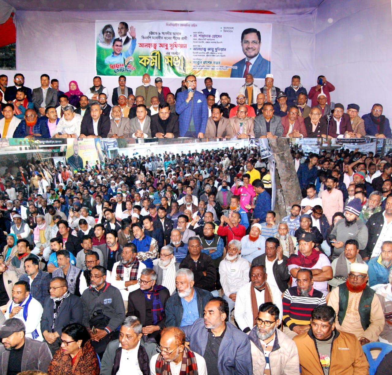 ৯ আসন নির্বাচন পরিচালনা কমিটির প্রধান সমন্বয়কারী ও মহানগর বিএনপির সাবেক সাধারণ সম্পাদক আবুল হাশেম বক্করের সভাপতিত্বে ও মহানগর বিএনপির যুগ্ম আহবায়ক ইয়াছিন চৌধুরী লিটনের পরিচালনায় এতে প্রধান বক্তার বক্তব্য রাখেন চট্টগ্রাম ৯ আসনের বিএনপি মনোনীত প্রার্থী আলহাজ্ব আবু সুফিয়ান।