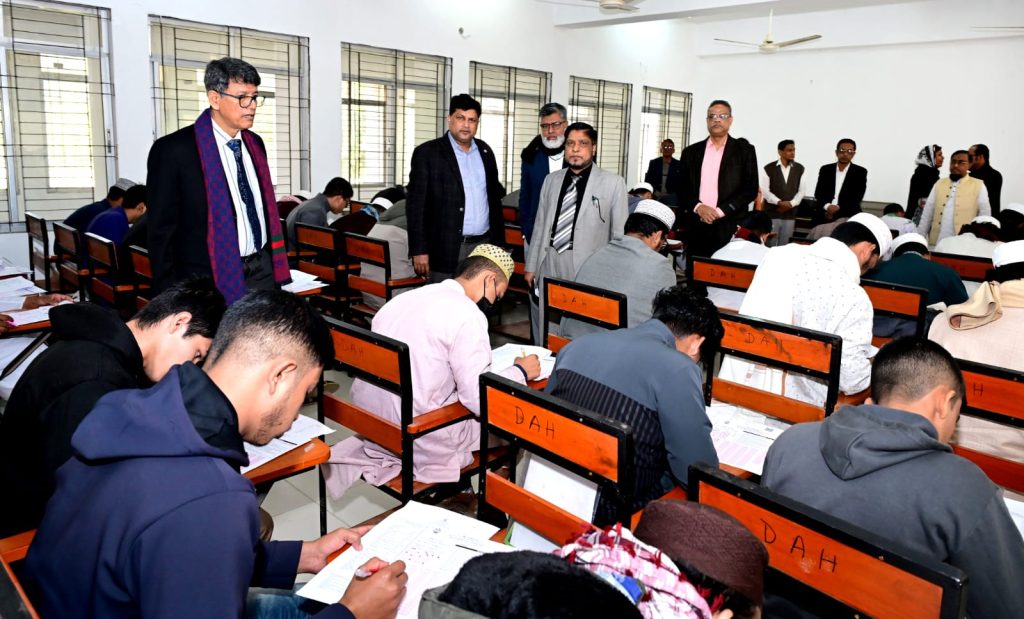 দেশচিন্তা ডেস্ক: চট্টগ্রাম বিশ্ববিদ্যালয়ের ২০২৫-২০২৬ শিক্ষাবর্ষে ১ম বর্ষ স্নাতক (সম্মান) শ্রেণিতে ভর্তি পরীক্ষা আজ বৃহস্পতিবার (৮ জানুয়ারি ২০২৬) ‘বি২’ উপ-ইউনিটের ভর্তি পরীক্ষা সকাল ১১.১৫ থেকে ১২.১৫টা পর্যন্ত চবি শহীদ হৃদয় চন্দ্র তরুয়া (কলা ও মানববিদ্যা অনুষদ) ভবনে অনুষ্ঠিত হয়। চট্টগ্রাম বিশ্ববিদ্যালয়ের মাননীয় উপাচার্য প্রফেসর ড. মুহাম্মদ ইয়াহ্ইয়া আখতার ভর্তি পরীক্ষার হলসমূহ পরিদর্শন করেন। এ সময় চবির মাননীয় উপ-উপাচার্য (একাডেমিক) প্রফেসর ড. মোহাম্মদ শামীম উদ্দিন খান, মাননীয় উপ-উপাচার্য (প্রশাসন) প্রফেসর ড. মো. কামাল উদ্দিন ও ‘ডি২’ উপ-ইউনিট ভর্তি কমিটির কো-অর্ডিনেটর, কলা ও মানববিদ্যা অনুষদের ডিন প্রফেসর ড. মো. ইকবাল শাহীন খান উপস্থিত ছিলেন।
