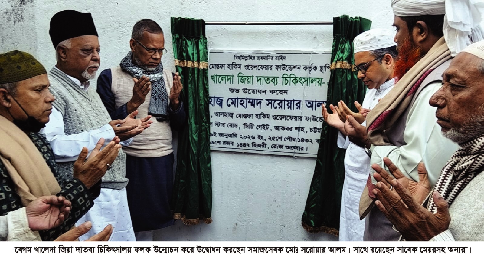 দেশচিন্তা ডেস্ক: চট্টগ্রাম সিটি কর্পোরেশনের সাবেক মেয়র আলহাজ্ব মোঃ মনজুর আলম প্রতিষ্ঠিত আলহাজ্ব মোস্তফা হাকিম ওয়েলফেয়ার ফাউন্ডেশনের উদ্যোগে প্রতিষ্ঠিত হলো সাবেক প্রধানমন্ত্রী বেগম খালেদা জিয়া দাতব্য চিকিৎসালয়। আজ ৯ জানুয়ারি বাদ জুম্মা আকবর শাহ থানাধীন ঈগল ষ্টার রোডে এই দাতব্য চিকিৎসালয় উদ্বোধন হয়েছে। ফলক উন্মোচন করে ও মোনাজাতের মধ্য দিয়ে বেগম খালেদা জিয়া দাতব্য চিকিৎসালয় উদ্বোধন করেন মোস্তফা হাকিম গ্রুপের পরিচালক, সমাজসেবক আলহাজ্ব মোহাম্মদ সরোয়ার আলম। এ উপলক্ষে অনুষ্ঠিত সুধী সমাবেশে সভাপতিত্ব করেন চট্টগ্রাম সিটি কর্পোরেশনের সাবেক মেয়র মোহাম্মদ মনজুর আলম। অনুষ্ঠানে আলোচনা করেন মোস্তফা হাকিম বিশ্ববিদ্যালয় কলেজের অধ্যক্ষ মোহাম্মদ আলমগীর, সমাজ সেবক নেছার আহমদ, সাবেক উপাধ্যক্ষ বাদশা আলম, সমাজসেবক ডাক্তার মেজবাহউদ্দিন তুহিন, সমাজসেবক আব্দুল মাবুদ, ডাক্তার সোহেলা আক্তার, সমাজসেবক নওশাদ আলী, মাওলানা জিয়াউল হক ও মাওলানা মোঃ ইমরান সহ অন্যরা। বেগম খালেদা জিয়া দাতব্য চিকিৎসালয় উদ্বোধন কালে সমাজসেবক আলহাজ্ব মোহাম্মদ সরোয়ার আলম বলেন, মানবতার সেবাই আমাদের একমাত্র লক্ষ্য। গরিব ও দোস্তদের সেবার জন্য দাতব্য চিকিৎসালয় চালু করা হলো। তিনি বলেন, সপ্তাহে ছয় দিন রোগী দেখা হবে। বিনামূল্যে চিকিৎসা সহ ঔষধপত্র সরবরাহ করা হবে। সভাপতির বক্তব্যে সাবেক মেয়র মোহাম্মদ মনজুর আলম বলেন, আমরা এ যাবত ১১৭টি প্রতিষ্ঠান এর মাধ্যমে মানবসেবা চালিয়ে যাচ্ছি ।