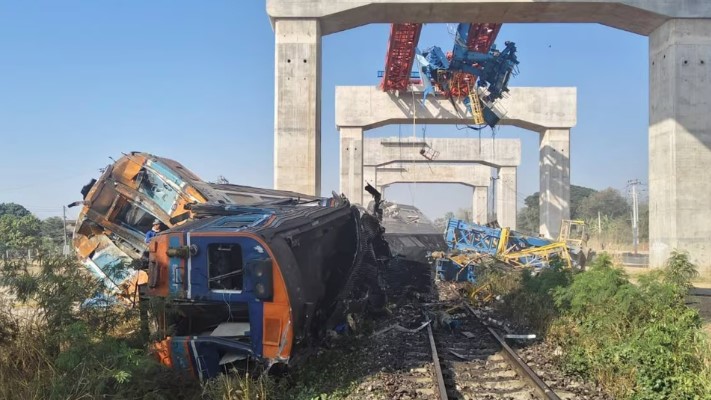 দেশচিন্তা ডেস্ক: থাইল্যান্ডে চলন্ত ট্রেনের বগির উপরে একটি নির্মাণাধীন ক্রেন ভেঙে পড়ার ঘটনায় কমপক্ষে ২২ জন নিহত এবং কয়েক ডজন আহত হয়েছেন।