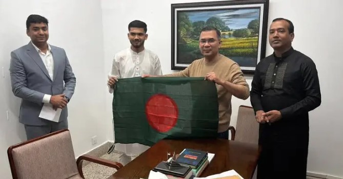 দেশচিন্তা ডেস্ক: ছাত্র-জনতার অভ্যুত্থানের সময় দেশব্যাপী শিক্ষার্থীদের ওপর গুলিবর্ষণের নির্মম বাস্তবতার মধ্যেই জাতীয় পতাকা হাতে নিয়ে প্রতিবাদের প্রতীক হয়ে উঠেছিলেন ছাত্রদল কর্মী মুত্তাকিন। সেই আন্দোলনের স্মারক হিসেবে ঐতিহাসিক সেই জাতীয় পতাকা বিএনপি চেয়ারম্যান তারেক রহমানের হাতে তুলে দিয়েছেন তিনি।
