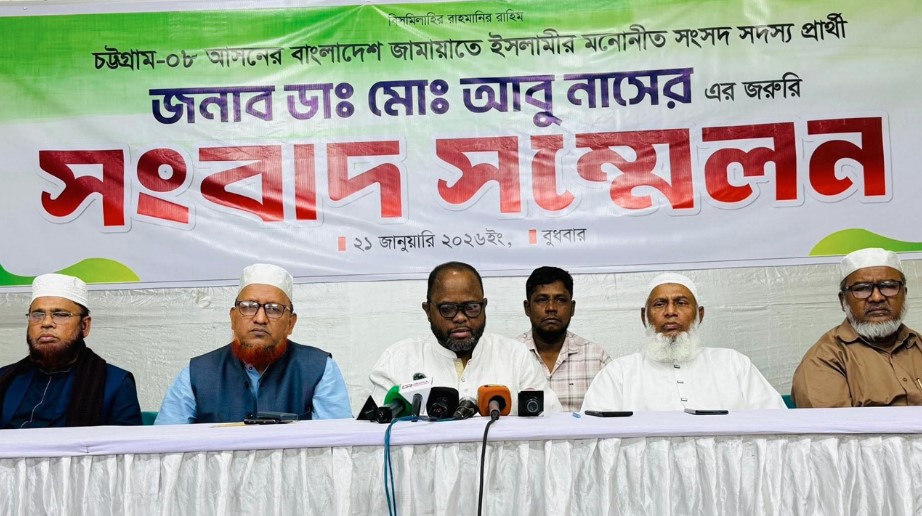 বুধবার (২১ জানুয়ারি) নগরের জামায়াত কার্যালয়ে আয়োজিত এক সংবাদ সম্মেলনে এ ঘোষণা দেওয়া হয়। জামায়াতের মনোনীত প্রার্থী ডা. আবু নাসেরের পক্ষে নগর জামায়াতের সহকারী সেক্রেটারি মোরশেদুল ইসলাম চৌধুরী এ ঘোষণা দেন। অসুস্থতার কারণে সংবাদ সম্মেলনে ডা. আবু নাসের উপস্থিত ছিলেন না বলে সংবাদ সম্মেলনে জানানো হয়।