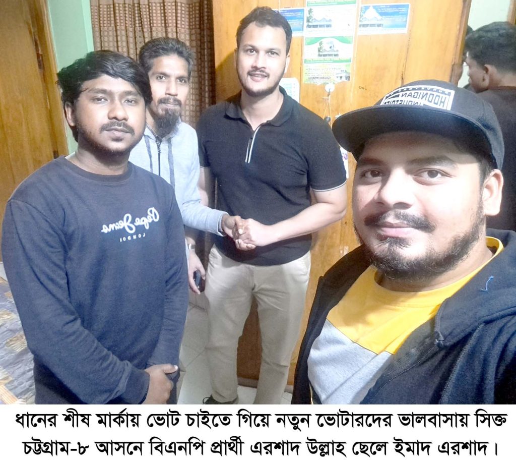 দেশচিন্তা ডেস্ক: চট্টগ্রাম-৮ সংসদীয় আসনের ধানের শীষের সংসদ সদস্য পদপ্রার্থী আলহাজ্ব এরশাদ উল্লাহ’র সমর্থনে বিভিন্ন মেডিকেল, বিশ্ববিদ্যালয়, কলেজে অধ্যায়নরত শিক্ষার্থীদের সমন্বয়ে ৭নং পশ্চিম ষোলশহরের শ্যামলী আবাসিক, সুন্নিয়া মাদ্রাসা, নাজির পাড়া, সিটি ভিউ, গ্রীণ ভিউ আবাসিক, সিদ্দিক মার্কেট, মোহাম্মদপুর এলাকা সহ শহরের বাসা বাড়ি থেকে শুরু করে গ্রামে-গ্রামগঞ্জের প্রচারণায় ধানের শীষে’র প্রার্থী এরশাদ উল্লাহ’র পক্ষে ছেলে ইমাদ এরশাদ।