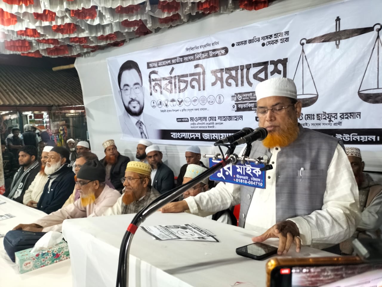 ৬ ফেব্রুয়ারী (শুক্রবার) বাদ মাগরিব বড়তাকিয়া বাজারে মীরসরাইয়ের সর্বস্তরের দায়িত্বশীল, কর্মী ও সমর্থকদের সমন্বয়ে এক বিশাল নির্বাচনী মিছিল শেষে আয়োজিত উক্ত সমাবেশে সভাপতিত্ব করেন ১২নং ইউনিয়ন সভাপতি মাও. একরামুল হক। এসময় উক্ত সমাবেশে প্রধান অতিথি হিসেবে উপস্থিত ছিলেন কেন্দ্রীয় এ্যাসি. সেক্রে. জেনারেল মাও. মো. শাহজাহান।